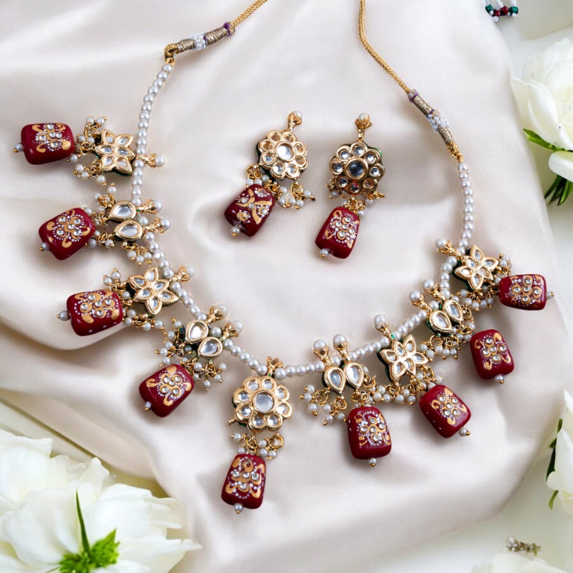 - Material: Alloy metal, Artificial stone, Pearls, Beads, Kundan, Meenakari