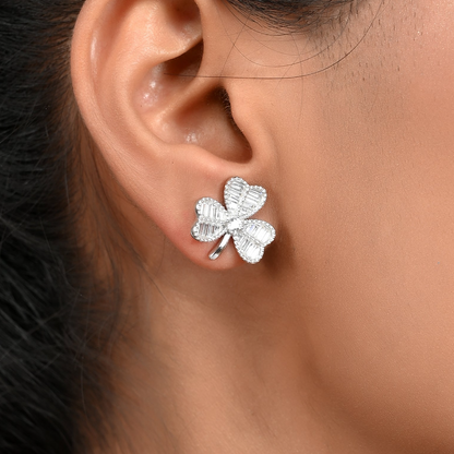 SILVER DIAMOND THREE PETAL EARRINGS
